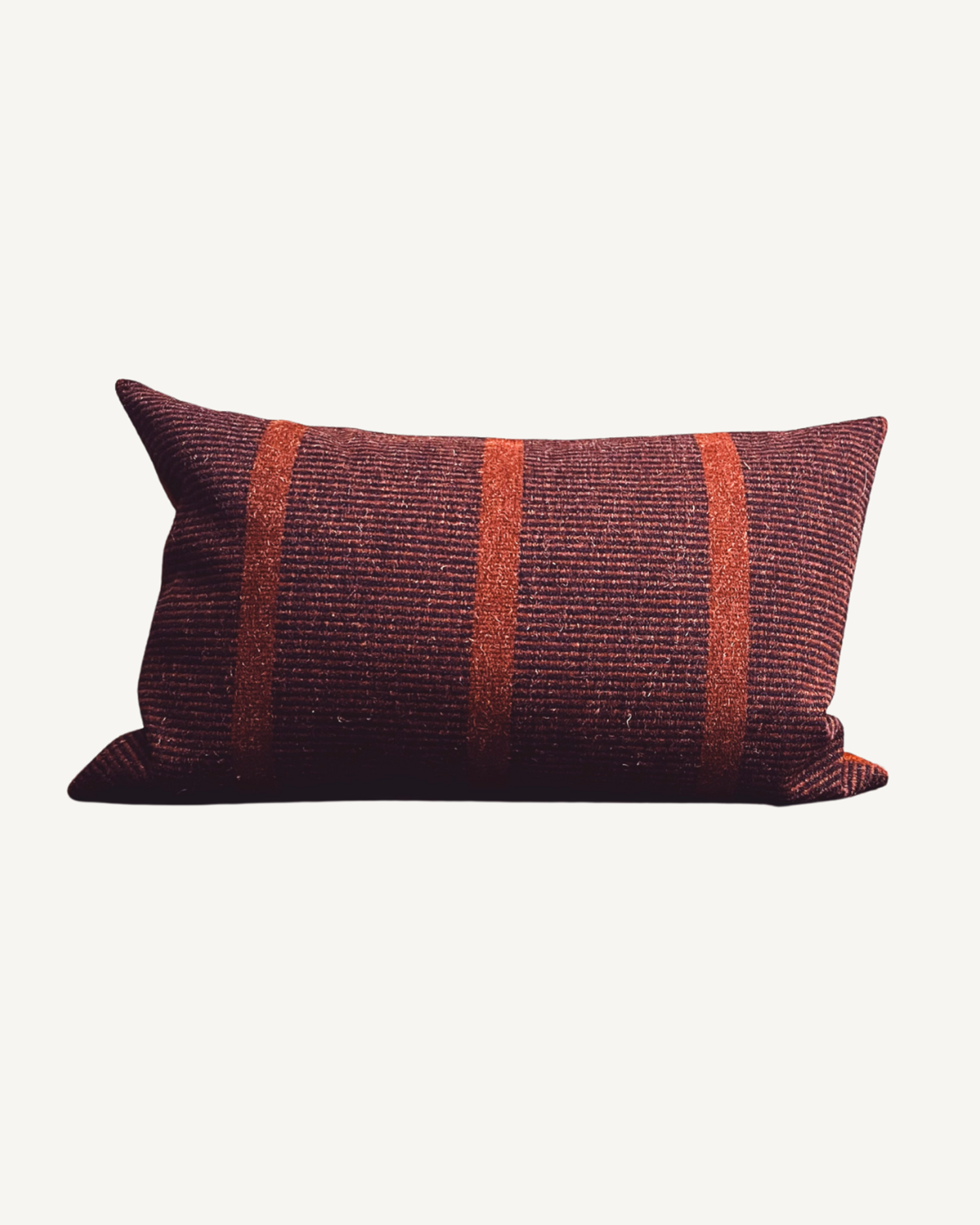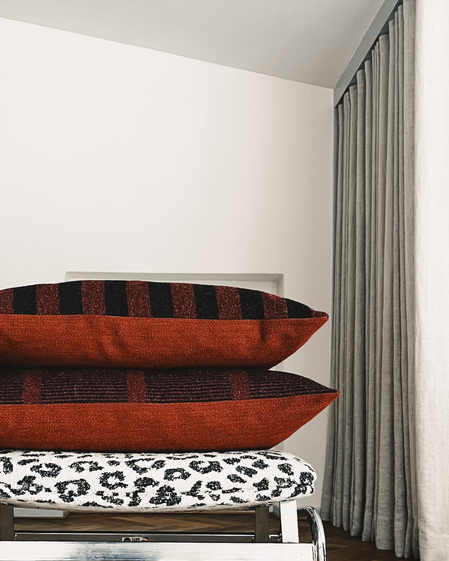 Puden er sammensat af to møbelstoffer, nøje udvalgt for deres smukke samspil.